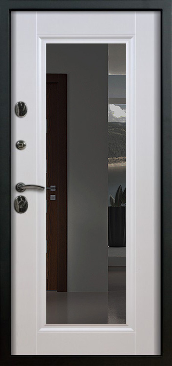 Металлическая входная дверь с зеркалом внутри №1 создана как универсальное решение для дома, квартиры или офиса, где важны и безопасность, и комфорт. Каркас выполнен из прочной профильной трубы с металлическим листом толщиной 2 мм и рёбрами жёсткости, что обеспечивает устойчивость к механическим воздействиям и долгий срок службы. Снаружи дверь покрыта порошковой окраской, стойкой к атмосферным влияниям и царапинам, а изнутри отделана МДФ с ПВХ-покрытием, которое сохраняет свежий вид даже при интенсивной эксплуатации. Встроенное зеркало превращает полотно в практичный элемент интерьера: оно визуально расширяет пространство прихожей и избавляет от лишних предметов мебели. Два контура уплотнителей защищают от пыли и сквозняков, а блокираторы усиливают общую надёжность конструкции. Модель не оснащена терморазрывом, зато отличается продуманным балансом практичности и доступной цены, оставаясь удобным вариантом для повседневного использования. Металлическая входная дверь с зеркалом внутри №1 от производителя: быстрое изготовление и монтаж в Гжели, индивидуальные размеры, широкий выбор материалов и фурнитуры, официальная гарантия до 10 лет.
