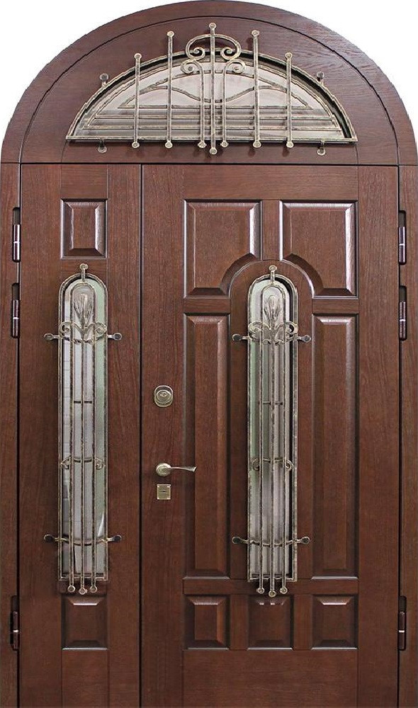 Арочные конструкции всегда придают входу выразительность и особый статус, а если добавить две створки и стеклянные вставки, дверь превращается в центральный элемент фасада. Натуральное дерево в отделке подчеркивает солидность и гармонично сочетается с металлом, из которого выполнено основание: каркас и полотно из профильных труб и стальной лист толщиной 2 мм обеспечивают прочность и долговечность. Для удобства и безопасности используются два замка разного типа — сувальдный и цилиндровый, оба с тремя ригелями, что делает взлом крайне затруднительным. Двухстворчатая арочная дверь со стеклом в частный дом №14 может изготавливаться любого размера и адаптироваться под архитектуру конкретного здания. Возможна установка дополнительных элементов: зеркало, стеклопакет, кованые детали или даже видеодомофон. Резиновое уплотнение по двум контурам защищает от сквозняков, а возможность выбора отделки и фурнитуры открывает простор для индивидуального дизайна. Двухстворчатая арочная дверь со стеклом в частный дом №14 от производителя: быстрое изготовление и монтаж в Гжели, индивидуальные размеры, широкий выбор материалов и фурнитуры, официальная гарантия до 10 лет.