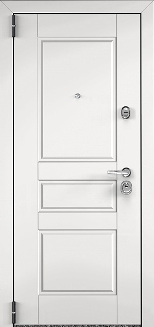 Белая металлическая дверь входная для дома №33 выделяется своим свежим и современным обликом. Универсальный белый цвет делает её уместной как в частном коттедже, так и в квартире или офисе, визуально добавляя простора и подчеркивая аккуратность фасада или интерьера. Конструкция двери основана на стальном листе толщиной 2 мм и усилена профильными трубами, что гарантирует надежность и устойчивость к нагрузкам. Важная особенность модели — наличие терморазрыва в полотне и коробке: благодаря этому дверь не промерзает в зимний период, исключается конденсат и сохраняется комфорт внутри помещения. Внешняя и внутренняя отделка выполнена из МДФ с ПВХ-покрытием, которое защищает поверхность от влаги и механических повреждений, сохраняя первозданный вид надолго. Два контура уплотнителя обеспечивают герметичность и дополнительную защиту от сквозняков. Эта дверь удачно сочетает эстетику и практичность, создавая надежный вход в любое жилище. Белая металлическая дверь входная для дома №33 от производителя: быстрое изготовление и монтаж в Гжели, индивидуальные размеры, широкий выбор материалов и фурнитуры, официальная гарантия до 10 лет.