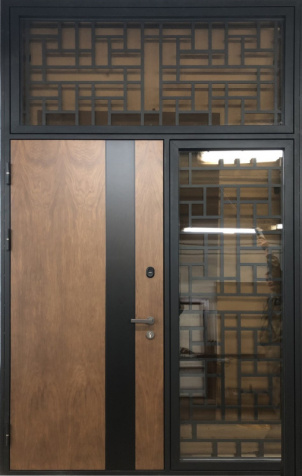 Глухая дверь с отделкой МДФ с фрамугой №35 — идеальный выбор для создания выразительного и функционального входа в любое помещение. Внешняя и внутренняя отделка из ламината придает двери элегантный и современный вид, одновременно обеспечивая защиту от механических повреждений и легкость в уходе. Каркас из профильной трубы 50х25 мм и прочный металлический лист толщиной 2 мм обеспечивают надежность и долговечность. Усиленные ребра жесткости добавляют устойчивости конструкции. В комплекте с двумя замками (сувальдным и цилиндровым) и трехригельной системой, дверь обладает хорошей защитой от несанкционированного доступа. Возможность добавления зеркала, стеклопакета или кованых элементов позволяет настроить дверь под любой интерьер, делая её не только функциональной, но и стильной. Глухая дверь с отделкой МДФ с фрамугой №35 от производителя: быстрое изготовление и монтаж в Гжели, индивидуальные размеры, широкий выбор материалов и фурнитуры, официальная гарантия до 10 лет.
