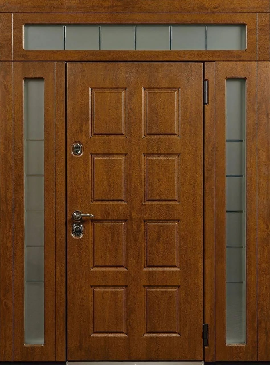 Элитная парадная дверь с фрамугой №4 станет не только защитой вашего дома, но и его визитной карточкой. Ее внешний вид, сочетающий плиту МДФ с ПВХ-покрытием, выглядит современно и гармонично, сохраняя стойкость к внешним воздействиям, таким как царапины и вмятины. Конструкция, выполненная из профильной трубы 50х25 мм и металлического листа толщиной 2 мм, гарантирует долговечность и прочность. Благодаря фрамуге дверь пропускает свет, добавляя пространству легкости. Встроенные замки с ригелями обеспечивают надежную защиту. Возможность выбора направления открывания и комбинирования отделок делает эту модель универсальной для любых интерьеров. Также можно дополнить дверное полотно зеркалом или стеклопакетом, а если требуется, заменить замки на более высокозащищенные модели. Элитная парадная дверь с фрамугой №4 от производителя: быстрое изготовление и монтаж в Гжели, индивидуальные размеры, широкий выбор материалов и фурнитуры, официальная гарантия до 10 лет.
