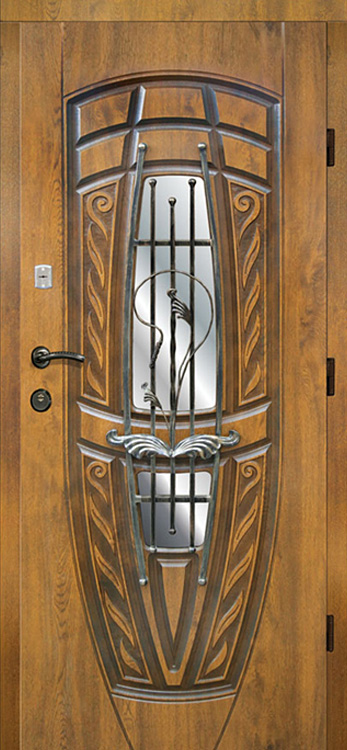 Для загородного дома важна дверь, которая умеет быть не только красивой, но и практичной. Натуральное дерево в отделке делает её внешне солидной и теплой, а декоративная ковка добавляет изящества и превращает вход в стильный акцент фасада. В основе конструкции лежит прочный стальной каркас с листом металла толщиной 1,5 мм и ребрами жесткости, а противосъёмные блокираторы обеспечивают дополнительный уровень защиты. Особого внимания заслуживает терморазрыв, выполненный в коробке и полотне: он надежно изолирует дом от холода, предотвращает промерзание и сохраняет уют даже при сильных морозах. Входная дверь уличная с ковкой №22 также оснащена тройным контуром магнитного уплотнения, что усиливает герметичность и помогает снизить шум. Конструкция позволяет выбирать размеры и дополнения по вкусу, включая стеклопакет, зеркало или видеодомофон, создавая гармонию между безопасностью, удобством и выразительным дизайном. Входная дверь уличная с ковкой №22 от производителя: быстрое изготовление и монтаж в Гжели, индивидуальные размеры, широкий выбор материалов и фурнитуры, официальная гарантия до 10 лет.