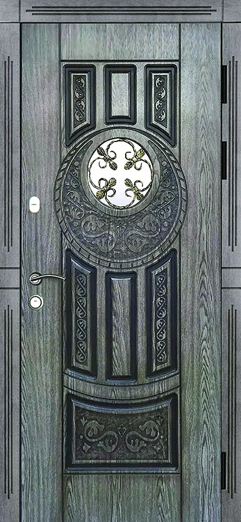 Эстетика классического фасада и надежность современной конструкции удачно сочетаются во входной двери с ковкой №24. Натуральный массив дерева придает ей благородный внешний вид, который органично смотрится в архитектуре коттеджа или частного дома. Декоративная ковка превращает дверь в акцент, подчеркивающий статус владельца, а стальной каркас с листом металла 1,5 мм и противосъёмными блокираторами обеспечивает прочность и стойкость к попыткам взлома. Важное преимущество конструкции — терморазрыв в коробке и полотне: он защищает от промерзания зимой и помогает сохранять комфортный микроклимат внутри. Тройной контур магнитного уплотнения дополнительно усиливает тепло- и звукоизоляцию, а наполнитель из плотного пенопласта снижает теплопотери. Входная дверь с ковкой №24 совмещает выразительность ручной отделки и современные технологии, предлагая не только защиту, но и индивидуальность в оформлении главного входа. Входная дверь с ковкой №24 от производителя: быстрое изготовление и монтаж в Гжели, индивидуальные размеры, широкий выбор материалов и фурнитуры, официальная гарантия до 10 лет.