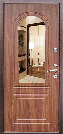 Зеркальная входная дверь в квартире №48 — практичное решение для тех, кто ценит удобство и аккуратный внешний вид. Зеркало внутри избавляет от необходимости в отдельной трюмо или шкафчике с отражающей поверхностью, что особенно удобно в небольших коридорах. Конструкция выполнена на основе прочного стального каркаса с листом металла толщиной 2 мм и усилена рёбрами жёсткости, благодаря чему дверь надёжно защищает от попыток взлома. Накладки МДФ служат не только декоративной отделкой, но и обеспечивают устойчивость к механическим повреждениям и долговечность при ежедневной эксплуатации. Два контура уплотнителя помогают сохранить тишину и тепло в помещении, а возможность выбора размеров и вариантов отделки делает модель универсальной для квартир, частных домов и офисных пространств. Зеркальная входная дверь в квартире №48 от производителя: быстрое изготовление и монтаж в Гжели, индивидуальные размеры, широкий выбор материалов и фурнитуры, официальная гарантия до 10 лет.