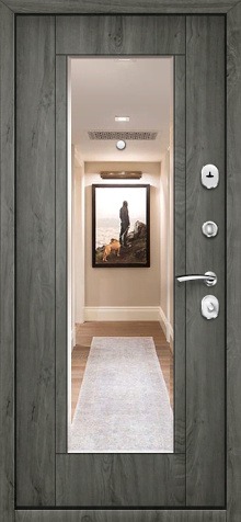 Стиль и функциональность редко встречаются в таком удачном тандеме, как в этой модели. Прочный стальной каркас из профильной трубы и лист металла толщиной 2 мм обеспечивает надежность, а два контура уплотнителей защищают от сквозняков и лишнего шума. Особенность конструкции — наличие терморазрыва в коробке и полотне, что исключает промерзание и делает эксплуатацию комфортной даже в суровые зимы. Зеркальная входная дверь №73 выделяется не только своей практичностью, но и эстетикой: большое зеркало внутри экономит пространство прихожей и добавляет свет. Снаружи поверхность покрыта порошковым термонапылением, устойчивым к механическим повреждениям и атмосферным воздействиям, благодаря чему дверь долго сохраняет первоначальный вид. Внутренняя отделка выполнена панелями МДФ с ПВХ-пленкой, которые придают теплоту и удобство в уходе. Для безопасности установлены два надежных замка российского производства, а при необходимости их можно заменить на премиальные модели или даже смарт-системы. Зеркальная входная дверь №73 от производителя: быстрое изготовление и монтаж в Гжели, индивидуальные размеры, широкий выбор материалов и фурнитуры, официальная гарантия до 10 лет.