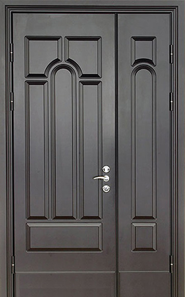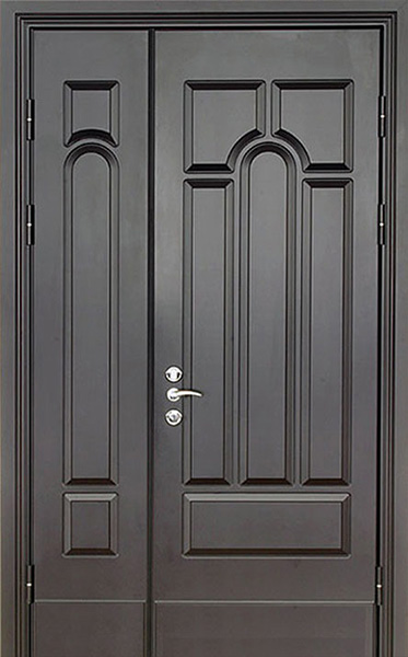 Металлическая двухстворчатая дверь для дома цвета графит №27 – это стильное и надежное решение для вашего жилья. Внешняя и внутренняя отделка выполнены из МДФ, что придает двери изысканный вид и увеличивает её стойкость к механическим повреждениям. Цвет графит придаёт двери современный и элегантный оттенок, который легко впишется в интерьер как частных домов, так и современных офисов. Металлическая двухстворчатая дверь для дома цвета графит №27 от производителя: быстрое изготовление и монтаж в Гжели, индивидуальные размеры, широкий выбор материалов и фурнитуры, официальная гарантия до 10 лет.