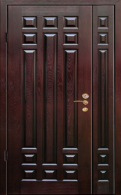 Эта двухстворчатая парадная дверь с объемной фрезеровкой №3 станет отличным акцентом в любом интерьере, добавив элегантности и солидности. Внешняя и внутренняя отделка из натурального дерева придает двери натуральный и стильный вид, который легко впишется как в классические, так и современные дизайны. Прочная конструкция двери с каркасом из профильной трубы 50х25 мм и листом металла толщиной 2 мм гарантирует долговечность и защиту. Ребра жесткости из профильных труб 40х25 мм повышают ее устойчивость к нагрузкам. Замки "Просам" и "Мосрентген" с тремя ригелями обеспечивают надежную защиту. Возможность выбора отделки и установки дополнительных элементов, таких как зеркало, стеклопакет или кованые детали, позволяет сделать дверь уникальной и подходящей под любые требования. Терморазрыв полотна и коробки способствует улучшению теплоизоляции. Вдобавок можно оснастить дверь современными замками и видеодомофоном для дополнительного комфорта и безопасности. Парадная двухстворчатая дверь с объемной фрезеровкой №3 от производителя: быстрое изготовление и монтаж в Гжели, индивидуальные размеры, широкий выбор материалов и фурнитуры, официальная гарантия до 10 лет.