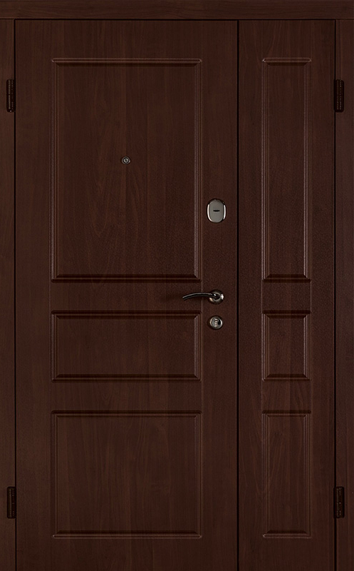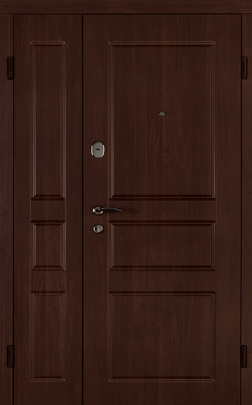 Коричневая входная полуторная дверь с филенчатой створкой №4 – это надежное и стильное решение для вашего дома или офиса. Внешняя и внутренняя отделка из МДФ с ПВХ обеспечивает долговечность и устойчивость к повреждениям, сохраняя при этом элегантный внешний вид. Прочные материалы конструкции, такие как профильная труба 50х25 мм и лист металла толщиной 2 мм, гарантируют стабильность и безопасность. Ребра жесткости из профильных труб 40х25 мм усиливают дверное полотно, а уплотнение с двумя контурами надежно защищает от внешних факторов. Несмотря на отсутствие терморазрыва, в двери реализованы терморазрывы в коробке и полотне, что помогает улучшить теплоизоляцию. Возможность выбора дополнительных опций, таких как шумоизоляция, делает эту дверь универсальной для различных условий эксплуатации. Коричневая входная полуторная дверь с филенчатой створкой №4 от производителя: быстрое изготовление и монтаж в Гжели, индивидуальные размеры, широкий выбор материалов и фурнитуры, официальная гарантия до 10 лет.