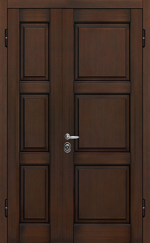 Двойная филенчатая дверь для загородного дома венге №7 сочетает в себе элегантность и прочность. Ее внешняя отделка выполнена из панелей МДФ с ПВХ, что придает двери современный вид, а также обеспечивает устойчивость к механическим повреждениям и долговечность. Каркас из профильной трубы 50х25 мм и полотно толщиной 2 мм гарантируют надежность и устойчивость к нагрузкам. Ребра жесткости из профильных труб 40х25 мм усиливают конструкцию, а уплотнение с двумя контурами защищает от проникновения влаги и пыли. Замки "Просам" и "Мосрентген" с тремя ригелями обеспечивают высокий уровень безопасности. В дверь можно добавить дополнительные элементы, такие как стеклопакет, зеркало или кованые детали, что позволяет адаптировать ее под любой интерьер. Терморазрывы в коробке и полотне способствуют лучшей теплоизоляции, обеспечивая комфорт в любое время года. Двойная филенчатая дверь для загородного дома венге №7 от производителя: быстрое изготовление и монтаж в Гжели, индивидуальные размеры, широкий выбор материалов и фурнитуры, официальная гарантия до 10 лет.