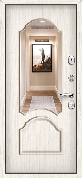 Входная дверь с зеркальной вставкой для прихожей №21 — это не просто надежное, но и стильное решение для частных домов, квартир и офисов. Благодаря прочному каркасу из профильной трубы 50х25 мм и металлическому полотну толщиной 2 мм, дверь гарантирует долговечность и высокую степень защиты. Внешняя отделка с порошковым напылением не только добавляет эстетичности, но и защищает от атмосферных воздействий, а внутренняя отделка из панелей МДФ ПВХ устойчива к механическим повреждениям. Вставка зеркала на двери добавляет современности и практичности, расширяя пространство прихожей. Два контура резинового уплотнителя эффективно предотвращают попадание холода и шума. Дверь оборудована двумя замками, что повышает безопасность. Также можно заменить замки на более современные модели и добавить опции, такие как стеклопакет или видеодомофон, что делает эту модель еще более универсальной. Входная дверь с зеркальной вставкой для прихожей №21 от производителя: быстрое изготовление и монтаж в Гжели, индивидуальные размеры, широкий выбор материалов и фурнитуры, официальная гарантия до 10 лет.