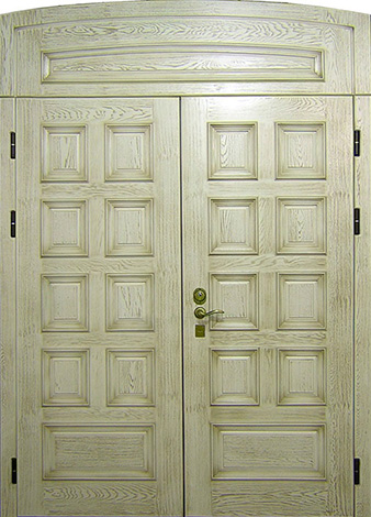 Входная дверь со стеклопакетом и патиной для загородного дома белая №29