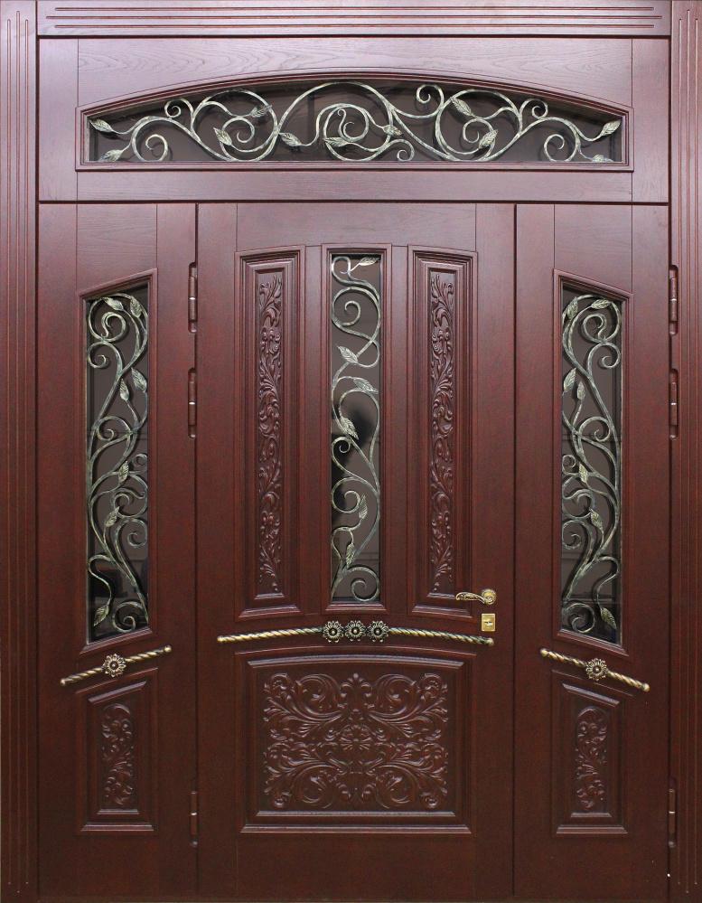 Большая входная дверь в частный дом со стеклом №328 создана для тех, кто ценит солидность и выразительный облик парадного входа. Широкое полотно на основе стальной конструкции с профилем 50х25 мм и листом металла толщиной 2 мм обеспечивает надежность и устойчивость к нагрузкам, а массив дуба в отделке придает дверному блоку статусный вид и долговечность. Натуральное дерево отличается стойкостью к повреждениям и долго сохраняет свой первозданный оттенок, что особенно важно для фасадных решений. Вставка из стекла добавляет естественного света в холл и делает интерьер более гостеприимным. Двойной контур резинового уплотнителя защищает от сквозняков, а наличие блокираторов повышает уровень безопасности. Такая дверь гармонично смотрится в коттеджах и частных домах, где парадный вход становится главным акцентом архитектуры. Большая входная дверь в частный дом со стеклом №328 от производителя: быстрое изготовление и монтаж в Гжели, индивидуальные размеры, широкий выбор материалов и фурнитуры, официальная гарантия до 10 лет.