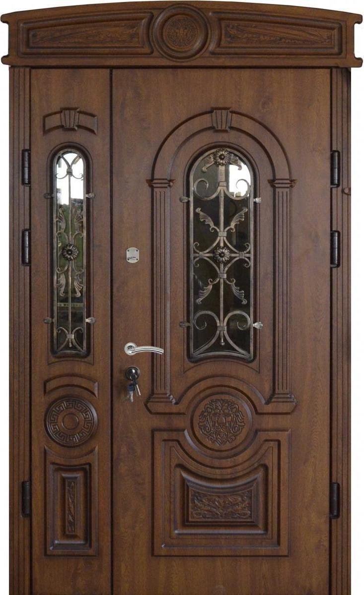 Натуральный массив дерева в отделке делает конструкцию не только практичной, но и выразительной, подчеркивающей архитектурный стиль загородного дома. Металлическая основа из профильной трубы с листом толщиной 2 мм и системой ребер жесткости обеспечивает прочность и надежность даже при активной эксплуатации. Дверь со стеклом входная уличная №402 гармонично сочетает декоративные свойства древесины и защитные качества стали, а вставка из стекла добавляет света в прихожую и визуально облегчает массивное полотно. Для защиты от холода предусмотрены два контура уплотнителей и блокираторы, усиливающие надежность системы. Итальянские замки Cisa — цилиндровый и сувальдный — с множеством ригелей обеспечивают высокий уровень безопасности. Возможность выбора направления открывания и дополнение двери коваными элементами или умными замками делает модель универсальной и подходящей для частных домов, где важны статус и комфорт. Дверь со стеклом входная уличная №402 от производителя: быстрое изготовление и монтаж в Гжели, индивидуальные размеры, широкий выбор материалов и фурнитуры, официальная гарантия до 10 лет.