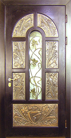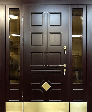 Натуральное дерево в отделке придаёт конструкции основательность и благородный внешний вид, а металлический каркас с листом стали толщиной 2 мм и системой ребер жёсткости обеспечивает надёжную защиту и долговечность. Входная дверь с остеклением №70 особенно востребована в частных домах и коттеджах, где важна не только безопасность, но и эстетика. Стеклянные элементы делают полотно визуально легче и наполняют прихожую естественным светом, при этом оставаясь частью прочной конструкции. Для комфорта предусмотрены два контура уплотнения, а терморазрыв в коробке и полотне защищает от промерзания и сохраняет тепло даже в сильные морозы. Итальянские замки Cisa цилиндрового и сувальдного типа дополняют высокий уровень безопасности. Возможность добавить кованые элементы, зеркало или стеклопакет позволяет адаптировать модель под архитектуру дома, подчёркивая индивидуальность и вкус владельцев. Входная дверь с остеклением №70 от производителя: быстрое изготовление и монтаж в Гжели, индивидуальные размеры, широкий выбор материалов и фурнитуры, официальная гарантия до 10 лет.