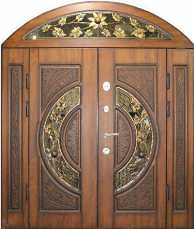 Дверь с надежной фурнитурой и коваными элементами на стекле №18