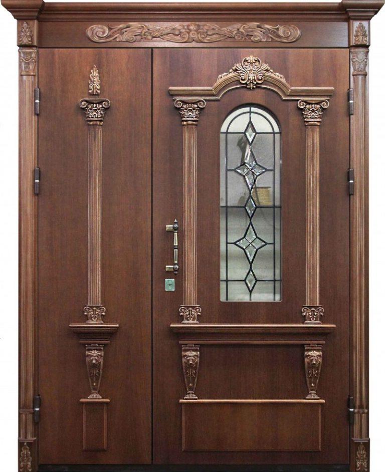 Эффектная дверь входная с окном №337 создана для парадных решений в коттеджах и частных домах, где важен не только уровень безопасности, но и выразительность архитектурного облика. Прочный каркас из стальной профильной трубы с листом металла толщиной 2 мм и системой ребер жесткости обеспечивает надежность конструкции, а отделка массивом дерева придает ей теплый и представительный вид. Натуральное дерево отличается стойкостью к царапинам и ударам, долго сохраняет форму и цвет, что делает дверь практичной для эксплуатации на улице. Встроенное окно добавляет естественного света и визуально облегчает массивное полотно, создавая гармонию между защитой и эстетикой. Двойной контур уплотнителей препятствует проникновению холода и влаги, блокираторы усиливают безопасность. Такая высокая дверь становится не только защитой, но и ярким акцентом фасада, подчеркивающим статус хозяев дома. Дверь в частный дом входная с окном №23 от производителя: быстрое изготовление и монтаж в Гжели, индивидуальные размеры, широкий выбор материалов и фурнитуры, официальная гарантия до 10 лет.