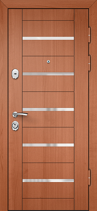 Современная входная дверь с цилиндровым замком №21 сочетает строгую надежность металлической конструкции и аккуратный внешний вид. Каркас из профильной трубы и лист стали толщиной 2 мм образуют прочный щит, усиленный ребрами жесткости и блокираторами. Накладки из МДФ придают полотну более «домашний» облик: материал не только эстетичен, но и практичен — ПВХ-покрытие стойко переносит небольшие повреждения и сохраняет первозданный вид долгие годы. Такая дверь подходит для квартиры, офиса или частного дома, где важно совместить защиту и стиль. Цилиндровый замок обеспечивает удобное и надежное закрывание, а два контура резинового уплотнителя защищают от сквозняков и лишнего шума. При желании возможно дополнить конструкцию тепло- и шумоизоляцией или установить замки другого типа, включая современные электронные системы. Современная входная дверь с цилиндровым замком №21 от производителя: быстрое изготовление и монтаж в Гжели, индивидуальные размеры, широкий выбор материалов и фурнитуры, официальная гарантия до 10 лет.