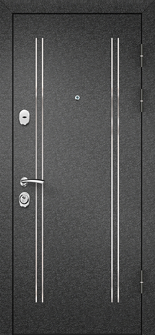 Дизайнерская современная дверь для дома №7 станет ярким акцентом вашего интерьера. Она идеально подходит для установки в частных домах, квартирах или офисах, придавая помещению стиль и современный шарм. Внешняя отделка с молоточковым напылением придает двери устойчивость к механическим повреждениям и атмосферным воздействиям, сохраняя её внешний вид на долгое время. Внутреннее покрытие из МДФ добавляет прочности и долговечности. Дополняет дизайн зеркало, которое не только украшает дверь, но и визуально расширяет пространство. Конструкция с металлическим каркасом и листом металла толщиной 2 мм обеспечивает высокую надежность, а профильные трубы усиливают жесткость полотна. Два контура уплотнителей защищают от холода и сквозняков, обеспечивая дополнительный комфорт. Дизайнерская современная дверь для дома №7 от производителя: быстрое изготовление и монтаж в Гжели, индивидуальные размеры, широкий выбор материалов и фурнитуры, официальная гарантия до 10 лет.