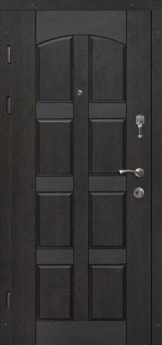 Входная дверь для дома уличная №18 разработана для установки в условиях, где от двери требуется максимум прочности и устойчивости к погодным испытаниям. Молотковое напыление на внешней стороне не только придает фактурный декоративный эффект, но и защищает поверхность от влаги, ударов и мелких повреждений, сохраняя привлекательный вид долгие годы. Внутри дверь отделана панелями МДФ с ПВХ-покрытием, которые отличаются стойкостью к царапинам и удобством в уходе, а также гармонично вписываются в любой интерьер прихожей. Каркас и полотно выполнены из профильных труб, усиленных стальным листом толщиной 2 мм и дополнительными ребрами жесткости, что делает конструкцию надежной и долговечной. Два контура резинового уплотнителя эффективно защищают от сквозняков и уличной пыли. Особое внимание заслуживает наличие терморазрыва в коробке и полотне: эта технология предотвращает промерзание и образование конденсата, обеспечивая сохранение тепла даже в сильные морозы. Входная дверь для дома уличная №18 от производителя: быстрое изготовление и монтаж в Гжели, индивидуальные размеры, широкий выбор материалов и фурнитуры, официальная гарантия до 10 лет.